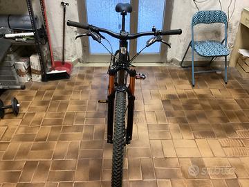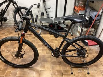 Mtb Enduro Wheelie bike 27,5 taglia M componenti : trasmissione Microshift 1x10 freni Sram Level T dischi Magura 180 mm,forcella ad aria con blocco al manubrio no brand 120 mm escursione,movimento centrale,pedali,e manopole nuovi di zecca copertoni al 90% sella ok.Togliendo freno e disco anteriore si trasforma in una Wheelie bike.La bici non è una Trek ma una Rockrider trasformata. Precedenza a scambio a mano ma spedisco in tutta Italia al costo di 30 Euro