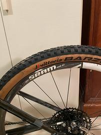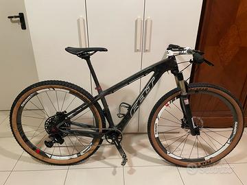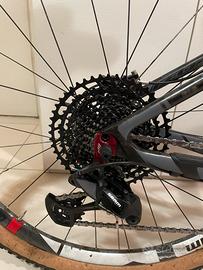 Vendo mtb in carbonio taglia s completa di cerchi sram rise 60 in carbonio, la bici é montata sram xs (trasmissione sostituita da poco), impianto frenante sram xo e forcella rockshox sid. La bici é sempre stata manutenzionata, presenta alcuni segni di usura nel tempo ma é tutto in stato funzionale. Vendo per inutilizzo.