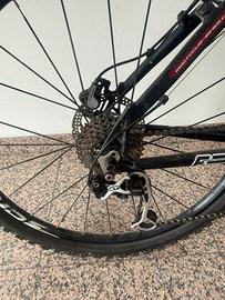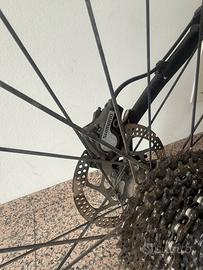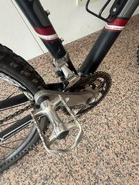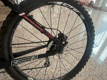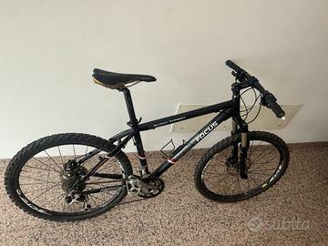 Vendo mountain bike Focus Black Forest taglia M/L, ruote da 26". Bici tedesca, telaio in alluminio "Made in Germany", robusta e leggera. Caratteristiche principali: • Telaio: Focus Black Forest alluminio, colore nero • Forcella: RockShox Recon SL ad aria/olio, steli da 32mm • Cambio: Shimano Deore XT posteriore, Shimano Deore anteriore • Freni: Shimano a disco idraulici con olio minerale • Ruote: Cerchi Mavic 26" • Trasmissione: Tripla corona Shimano Deore 3x9v • Extra: Portaborraccia incluso Condizioni: Usata con normali segni d'uso. La meccanica funziona, cambio e freni sono ok. Da segnalare: la sella è rovinata ai lati e andrebbe sostituita. Catena e copertoni hanno chilometri ma ancora utilizzabili. Ideale per chi vuole una base di qualità da sistemare o usare subito per sterrati leggeri e città.
