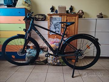 VENDO meravigliosa e nuovissima di ZECCA mai usata Mountain Bike FOCUS WISTLER EQP, la versione con luci a led, pafanghi e dinamo nel mozzo anteriore, 29 pollici taglia L molto bella e professionale marca tedesca, caratteristiche principali:telaio in alluminio 6061,forcella fsa regolabile e bloccabile con escursione da 100 mm, cambio shimano altus 27 velocita, freni a disco idraulici shimano, comandi shimano ecc, colore bellissimo canna di fucile, costa quasi 1000 euro la bici, vendo per inutilizzo e stato un regalo di mia moglie vendo a malincuore, per informazioni non esitate a contattarmi PREZZO LEGGERMENTE TRATTABILE!!!