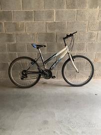 MTB Frejus FRJ580 – 26 pollici Vendo mountain bike Frejus FRJ580. •Telaio in metallo, colore bianco/nero con dettagli blu •Cambio a più rapporti (3 corone anteriori, pacco pignoni posteriore) •Freni a pattino V-brake •Copertoni tassellati, adatti a strada e sterrato •Sella comoda con inserti blu •Manubrio dritto con campanello La bici è in buone condizioni, usata ma pronta all’uso. 💰 Prezzo: 45 € (poco trattabile)