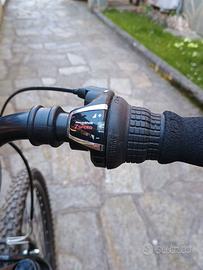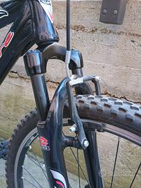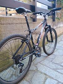 Vendo MTB front suspended 26 pollici. Tenuta sempre in garage. L'avevamo acquistata per nostra figlia che alla fine l'avrà usata un paio di volte. E' solo rovinata la serigrafia sul tubo dove era appesa al gancio. Telaio piccolo, adatta a una persona non molto alta (sull'1,60).
