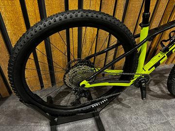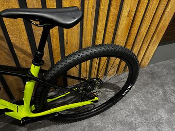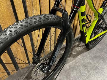 TELAIO IN CARBONIO, FORCELLA ROCK SHOX RECON 100 MM CON BLOCCO AL MANUBRIO, TRASMISSIONE 1X12V Z 30 ANTERIORE E 11/51 POSTERIORE, CAMBIO SHIMANO DEORE XT E SELETTORE SLX . RUOTE DA 29" BOTRANGER IN ALLUMINIO KOVEE COMP, REGGISELLA TELESCOPICO.