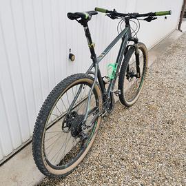 Vendo bicicletta usata. Pacco pignoni e catena nuovi. Gomme come nuove. Forcella santour. Cambio Shimano deore 10 v con doppia corona Ottima mtb per iniziare l'approccio alla mtb.