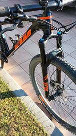 MTB front KTM MYROON ELITE telaio in carbonio, forcella FOX Rhythm Float 32mm, freni shimano 4 pistoncini, cambio xt Deore 12V monocorona, taglia M cerchi da 29”. In aggiunta ho montato sellino telescopico con comando sul manubrio e pellicola protettiva sul telaio. La bici è perfetta, contattare solo se realmente interessati. Nel prezzo sono compresi parti di ricambio. No spedizione, posso consegnare.