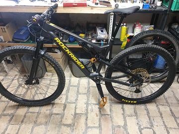 vendo rockrider xc500s, taglia L la bici è in perfette condizioni,controllata regolarmente,sempre ripulita e ingrassata dopo ogni attività in modo maniacale. il telaio presenta i alcuni graffietti dati dal normale utilizzo ma nessun danno strutturale. dischi freni 203mm ant +post, pacco pignoni garbaruk oro (250.00 euro)super leggero solo 400gr. catena xx1 gold ( 70.00euro)originale sram con perni forati super leggera, reggisella telescopico (180.00 euro)170mm di ascesa. al momento monta gomme nuove maxxis da trail con soli 44km percorsi(al 100%) ma posso montare anche gomme da crosscountry kraken piu leggere al 80%, a vostra scelta. vendo a malinquore semplicemente per bisogno di spazio,in famiglia siamo 4 ciclisti e non ho più spazio in garage come si vede dalla foto. disponibile per qualsiasi prova o altre foto di dettagli precisi.
