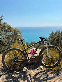 Mountain bike Front full carbonio 29 taglia M, un vero missile in salita con soli 9 kili di peso, che si difende bene in discesa grazie ad un ottima forcella ed al reggisella telescopico