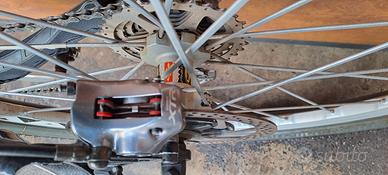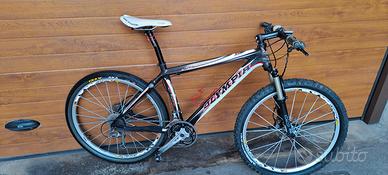 Vendo solo per intenditori mtb Olimpia Stark full carbon 26 tenuta divinamente Come si vede dalle foto e in perfetto funzionamento... leggerissima...caratteristiche cambio e freni deor XTR reggisella Thomson pipa e manopole ritchey forcella Rock Shox seed bloccabile al manubrio...ecc!! Regalo in più luci contachilometri pastiglie freni e altri copertoni camera d'aria e kit riparazione forature... prezzo 450€ trattabile...( taglia m.. )
