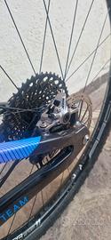 vendo bellissima mountainbike full TRINX FACTORY TEAM, anno 2023, taglia M per altezze 165-178 cm, 10,9 kg + pedivelle. Telaio carbonio. Manubrio carbonio Switch. Freni shimano xtr con pasticche nuove. guarnitura shimano XTR,pedali 170, corona 32. Pedali shimano xt. Misuratore di potenza su corona anteriore. deragliatore shimano xt 12v Pacco pignoni sram eagle xx1 gold usato pochissimo con catena sram eagle nuova. Reggisella telescopico Switch. sella selle italia slr xcross carbonio, 145 grammi. Forcella Fox 32 step cast kashima 1300 grammi. ammortizzatore post Manitou ruote alluminio stans con mozzi damil, tubeless. pneumatici Maxxis Ardent. pronta all'uso, nessun lavoro da fare. preferisco consegna a mano