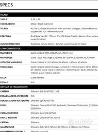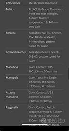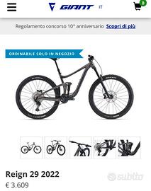 Vendo bici mtb full Giant Reign 29 2022 taglia S (altezza fino a 175 cm) Acquistata nuova a maggio 2024 unico proprietrlario. Ancora in garanzia. Usata solo in 5/6 uscite in bike park . Pellicolata e mai incidentata . Caratteristiche tecniche come da in foto . Possibilità di consegnarla in un raggio di 100 km previo accordo telefonico. No perditempo. Trattabile ma No svendita.