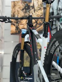 La bici è allestita con un gruppo Sram X0 T-TYPE AXS, ruote DT SWISS XRC 1501, forcella Fox 34 Kashima, sospensione FOX DPS Kashiima, reggisella FOX Transfer SL, freni Magura MT8 Carbon