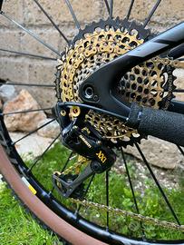 Come da foto la bici è in ottime condizioni interamente in carbonio dai manettini alle pedivelle, sospensioni revisionate da poco presso Gallo Moto la forcella ed il centrale tre posizioni da manettino, ovviamente tutte kashima.