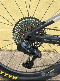 MTB FULL Scott Spark RC Limited Edition “Silverfish” misura M. Telaio in carbonio Spark RC 900 WC in colorazione argentata e con finitura che imita l’alluminio grezzo. Manubrio monoscocca Syncros Fraser IC, forcella RockShox Sid Ultimate e un ammortizzatore a tre posizioni RockShox Nude. Trasmissione Sram Eagle AXS 12v e freni Sram Level Ultimate con pinze colorate. Ruote Mavic Crossmax Elite Carbon.