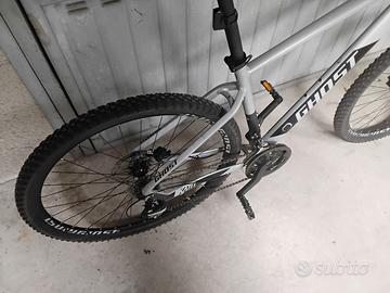 MTB Ghost Kato 29" Taglia XL (2022) - Meccanica Nuova Fatturata Vendo Mountain Bike Ghost Kato Essential acquistata nuova a giugno 2022 prezzo di listino 749 € ( contratto di acquisto esibibile), causa passaggio a modello superiore in carbonio. La bici è una taglia XL (ideale per stature da 1.82 m a 1.95 m circa) ed è dotata di grandi ruote da 29 pollici, perfette per stabilità e velocità. La bici è stata oggetto di un importante intervento meccanico a luglio 2025 presso officina specializzata (visibile fattura da 122 €). Lavori effettuati: Sostituzione Movimento Centrale Sostituzione completa della Pedaliera (corone anteriori nuove) Catena nuova e regolazione del cambio Caratteristiche e componenti: Cambio Shimano a 24 velocità (tripla corona anteriore 3x8) Freni a disco. Note sulle condizioni attuali (Trasparenza): La bici è perfettamente marciante e in buono stato. Segnalo solo che i copertoni iniziano a essere consumati. Inoltre, la catena si è allungata con i chilometri e il pignone più piccolo slitta , occasionalmente, sotto forte sforzo (la cassetta posteriore a 8v costava all'epoca solo 15 € come ricambio originale, come dimostra la fattura allegata). Prezzo: 374 € (esattamente la metà di quanto l'ho pagata). Poco trattabile visto il prezzo già onesto e i lavori documentati eseguiti. Disponibile per visione e prova di persona a Gallarate e dintorni. Non spedisco.