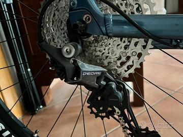 Vendo o scambio con bici da corsa L/XL di mio gradimento, mtb come nuova usato pochissimo come si evince anche dall’usura dei pneumatici praticamente nuovi. Trasmissione •Shimano Deore 1x12 velocità Sospensione •Forcella Giant SXC32-2 RL ad aria Ruote •Cerchi in alluminio double wall •Coperture Maxxis Rekon 2.4” Telaio •Alluminio ALUXX-grade (leggero e resistente) •Passaggio cavi interno Freni •Freni a disco idraulici: • Shimano •Dischi: 180 mm anteriore / 160 mm posteriore Componenti •Manubrio: Giant Connect Trail (circa 780 mm)  •Attacco manubrio Giant Sport •Reggisella standard (compatibile con telescopico) Regalo casco decathlon nero con luce posteriore E kit giant ( come da foto) per riparare le ruote da forature . Scambio o vendo a mano su cassino Non spedisco