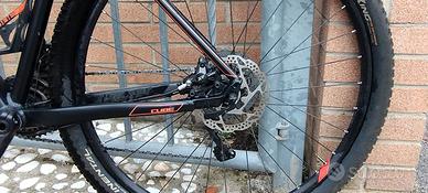 MTB Cube modello Race One Limited Edition 29" telaio misura L in alluminio. Perfetta per chi intende vivere il fuoristrada non estremo per lunghe pedalate su terreni battuti e non particolarmente sconnessi. Ottima bicicletta anche per uscite gravel in quanto predisposizione attacchi borsoni.Ottima componentistica Shimano Deore XT, freni idraulici Shimano,forcella anteriore RockShox con comando blocco sul manubrio. Sospensione aria regolabile ( in dotazione pompa con manometro) . Sterzo FSA conico. Sella modello Sella Italia Nekkap. stato di usura gomme : posteriore nuova anteriore usura molto buona. Pedali in lega alluminio per doppio utilizzo attacco SPD ( scarpe gravel/MTB ) e per uso scarpe senza attacchi.