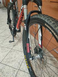 vendo haibike in perfette condizioni e con montaggio di alta qualità, taglia L/XL. - telaio in carbonio alto modulo haibike - forcella reba con pulsante -gruppo XT 2x10 - freni XT m 8000 con anch'essi XT anche i dischi - cerchi DT swiss 1700 spline, di cui quello dietro e stato messo nuovo il cerchio con canale 25 - copertoni tubeless della maxxiss top di gamma Ferma da qualche anno per problemi fisici, prima della vendita verranno spiegati i freni e ispezionati i copertoni con l'aggiunta del lattice. VERO AFFARE POSSO SPEDIRE