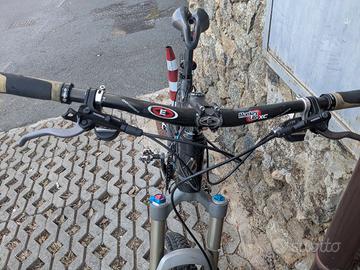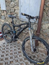 MTB in ottime condizioni, biammortizzata, cambio Shimano XT, tripla e pignone 9 velocità. Freni a disco. Ruote 26". Telaio in carbonio. Dimensioni del telaio adeguate ad un'altezza intorno ad 1.70 m