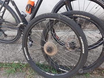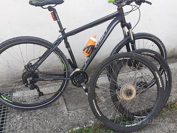 scrivo x conto di un amico che cambia modello quindi cede MTB Merida in alluminio con tripla davanti 9 rapporti completa di una copia in di ruote da 29 con copertura maggiorata taglia L cmq molto versatile vedi foto.Non spedisco consegna a mano €400 rispondo a chiamate 3487151366 Pierluigi.. grazie prezzo tratt dopo visione