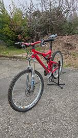 vendo splendida intense taglia L modificata per enduro, con ruote tubeless da 26" pneumatici specifici dal valore di 100 euro alla coppia, ammortizzatore anteriore Fox telescopico, ammortizzatore posteriore Fox, doppio disco da 180mm.