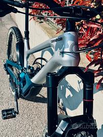 Bellissima mtb acquistata a novembre 2025, usata due volte. Prezzo NON TRATTABILE. Bici immacolata, come nuova. Non spedisco, solo ritiro a mano. Specifiche Tecniche Telaio – All-New, 165mm travel, Carbon, Proportional Response Tuned, Guidler idler pulley/chainguide, BSA 73, ISCG05, tapered head tube, Ai Offset Forcella – RockShox Zeb Select, 170mm, 15x110mm thru-axle, tapered steerer, 44mm offset Ammortizzatore – Fox Float DPX2 Performance EVOL, 205×65 Metric Trunnion, Air, 3-Pos adj. Serie sterzo – Integrated Sealed Bearing, Tapered Movimento centrale – Shimano Deore BSA 73 Catena – Shimano Deore 6100, 12-speed Guarnitura – Shimano Deore 6120, 30T, 55mm CL Pacco pignoni – Shimano Deore M6100, 10-51, 12-speed Cambio – Shimano Deore M6100 Leve cambio – Shimano Deore M6100, 12-speed Leve Freno – Shimano M6120 hydraulic disc Freni – Shimano M6120 hydraulic disc, 203/203mm RT64 rotors Manopole – Fabric Funguy Manubrio – Cannondale 3 Riser, 6061 Alloy, 30mm rise, 8° sweep, 6° rise, 780mm Sella – Cannondale Stage 3 Reggisella – TranzX dropper, internal routing, 31.6, 130mm (S), 150mm (M – XL) Attacco Manubrio – Cannondale 3, 6061 Alloy, 31.8, 0° Mozzi – (F) Shimano MT400, 15x110mm thru-axle / (R) Shimano MT410 12x148mm thru-axle Cerchi – WTB STX i30 TCS, 32h, tubeless ready Raggi – Stainless steel, 14g Pneumatici – (F) Maxxis Assegai, 29 x 2.5″, Dual compound, EXO+ puncture protection, tubeless ready, (R) Maxxis Minion DHR II, 29 x 2.4″, EXO+, tubeless ready