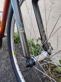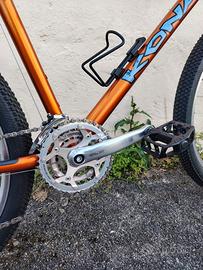 Vendo Kona Koa Race Light del 1997, telaio in alluminio double butted, taglia L. La bici non nasceva con questa configurazione: è stata completamente smontata e ricostruita da zero, con un lavoro di ricerca mirata per montare solo componenti Shimano XT coerenti con il periodo, tutti di fascia alta. Un progetto pensato dall’inizio alla fine. Restauro / ricostruzione: bici portata completamente a telaio telaio lucidato a mano con polish tutti i componenti sostituiti (ruote, gruppo, movimento centrale, serie sterzo, ecc.) ricerca specifica dei pezzi corretti per epoca diversi componenti nuovi / NOS componenti lavati ad ultrasuoni ingrassaggi e registrazioni fatti a mestiere ruote smontate, revisionate e riassemblate cambio regolato e settato da ciclista cavi e guaine Shimano nuovi Allestimento attuale: Telaio Kona Koa Race Light 1997 – alluminio double butted – taglia L Forcella rigida originale Kona Project Two Trasmissione completa Shimano XT M739 Freni V-Brake XT M739 con comandi integrati Cerchi Mavic 221 Mozzi Shimano XT HB / FH-M737 Raggi DT Swiss Attacco e manubrio Ritchey Serie sterzo Tioga Sella Selle Italia Flyte Trimatic Copertoni Maxxis 26x2.10 nuovi (0 km) La bici è: meccanicamente perfetta pronta a pedalare affidabile adatta sia all’uso che all’esposizione Non è una bici “originale da catalogo”, ma una ricostruzione coerente e di alto livello, pensata per chi apprezza la qualità dei componenti e il carattere delle MTB anni ’90. Foto e video del lavoro e dei dettagli disponibili in privato. Prezzo: 500 € Valuto solo contatti seri e consapevoli.