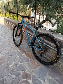 la bici e fatta per impennate,ha una pinza Shimano mt200 con una pompa freno Shimano mt401 e un disco freno da 180mm, ha un cambio della Shimano deore da 12 marcie,la bici presenta dei piccoli graffi la bici e in perfette condizioni ed funziona benissimo, il prezzo e trattabile ma non troppo.