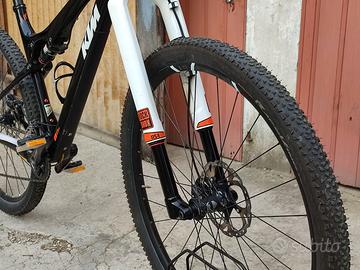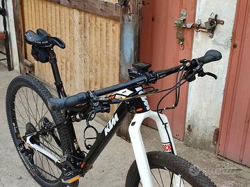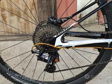 Vendo fantastica MTB professionale KTM Scarp Prime interamente in carbonio, manubrio compreso. La bici, molto leggera e performante, è montata interamente con Shimano Deore XT, deragliatore posteriore a parte. La forcella è una Rock Shox in carbonio a steli rovesciati, modificata e portata a 120 mm direttamente da casa madre. L'ammortizzatore è praticamente nuovo nuovo e snodi e cuscinetti sono perfetti e privi di laschi. Le ruote sono
