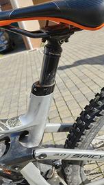 Vendo MTB LApierre Spicy 8.0 Taglia M (168-180 cm) Telaio full Carbon - Bici vissuta, ma perfettamente funzionante. Presenta normali segni di usura, pellicolata, montata 29 pollici 160 mm posteriore 170 mm anteriore (è possibile trasformarla in mullet con flip chip). Così Montata: Forcella: Fox 36 Float performance 170 mm + Kit Andreani Ammortizzatore: FOX DHX2 FACTORY TRUNNION 205 x 60 (29) con molla Fox 550 lbs Molla di ricambio 450 Lbs Freni Magura MT5 con leve 1 dito Ruote DT Swiss 1700, 15x110mm/12x148mm, Tubeless Ready Reggisella: BikeYoke nuovo 150mm Corona 30 denti, in opzione corona originale 32 denti Shimano Cambio SLX Shimano 10-51 Bici già rivestita con pellicola protettiva Pneumatici Pirelli scorpion o Maxxis Assegai/Dissector N.B. Non sono inclusi pedali parafango e sella che verranno sostituiti con altri simili Prezzo 1100,00 euro trattabili. Possibilità di consegna a mano zone Milano, Monza Brianza o Lecco