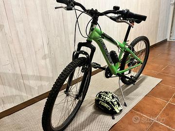 Vendo MTB Leardini Rider 24'' in perfette condizioni: acquistata nuova e usata poche volte. Ottimo frame, dotata di cambio Shimano 3 corone x 6 rapporti, accessoriata di luci anteriore e posteriore, cavalletto, campanello, porta borraccia e borraccia. In dotazione regalo anche caschetto ragazzo come da foto. Ottimo Affare!!