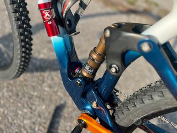 Lee Cougan crossfire 428 Taglia S Così meglio accessoriata: - Forcella fox 32 Kashima (appena revisionata novembre 2025) - Ammo posteriore Fox 100 kashima - Manubrio integrato carbonio Ursus - Cambio Sram XX eagle - Comando forcella in alluminio syncros - Guarnitura Garbaruk anodizzata arancio - Movimento centrale BIKONE - Corona (NUOVA) Garbaruk 32 - Catena (NUOVA) sram - Cassetta Garbaruk - Potenziometro (NUOVO) INPEAK Powercrank - Reggisella carbonio Switch - Sella SLR selle Italia - Freni magura MT8 - Dischi Galfer (NUOVI ) - Pastiglie Galfer (NUOVE) - Perno titanio Carbon TI - Ruote Microtech RK 25 (NUOVE mai usate) - Pneumatici CST Patrol e Jack Rabbit. Bicicletta revisionata in perfette condizioni. Normali piccoli segni di usura. Possibilità di visionarla e testarla in qualsiasi momento presso ciclista di fiducia.
