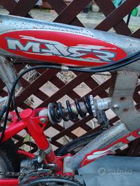 Mtb misura 26. Biammortizzata, usata ma ancora ben tenuta. La cromatura in alcuni punti è un po' sciupata ma fa ancora la sua figura. Lucidata diventa molto carina. Cambio Shimano Altus 18 velocità.
