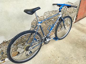 Vendo rara Mountain bike vintage americana Marin modello Muirwoods. telaio in acciaio superleggero e numerosi componenti in alluminio anodizzato blu. la bici è completamente originale in ogni sua parte. monta ancora i copertoni originali Marin. taglia M/L, misure 48 verticale 56 orizzontale, montata Shimano altus, ruote araya. perfettamente funzionante, conservata, adatta ai nostalgici degli anni 90 o ad essere trasformata in una Gravel stilosissima. eventualmente posso anche effettuare personalizzazione su richiesta. preferisco ritiro a mano, eventuali spese di spedizione a carico dell' acquirente.