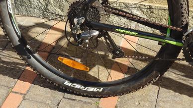 Merida Big Nine 40 Telaio Big Nine Speed, alloy,taglia M, cerchi 29", Forcella Suntour XCM 100mm travel Cambio in Shimano Altus 16 rapporti Deragliatore Shimano M2000 Comandi Shimano EF505 9x3s Leve Shimano EF505 Freno anteriore Shimano EF505, disc 160mm Freno posteriore Shimano EF505, disc 160mm Pedivella Shimano MT100 Corone 40-30-22t Cassetta Shimano CS-HG200, 9s, 11-32t Catene KMC M99 Manubrio Merida Speed Oversize clamp 690mm Potenza Merida Speed Oversize clamp 7 degree Cerchi Merida aluminium Pneumatici Merida K1080 29 x 2.2" Sella Merida Sport comfort Reggisella Merida Speed 27.2mm Pedali VP VPE-891 Peso 15,20 kg Come nuova, km percorsi 45. Prezzo 430 €