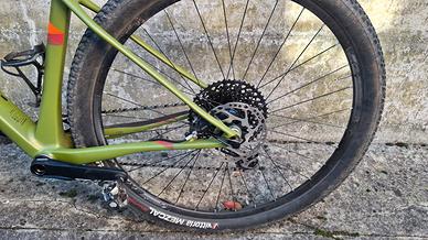 MTB con telaio in carbonio, equipaggiata con ruote da 29", forcella Fox da 100mm, freni a disco idraulici e cambio Sram GX Eagle 12s ForcellaFox 32 Rhythm Performance 100mm CambioSram GX Eagle 12s ComandiSram GX Eagle 12s Freno anterioreShimano SLX, 180mm disc Freno posterioreShimano SLX, 160mm disc Corone32t CassettaSram XG 1275 Eagle 12s, 10-50t Cerchi Merida Expert CC SellaPrologo Scratch ReggisellaMerida carbon Expert in line 30.9mm Peso10,60 kg (M size)