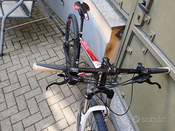 Vendo mtb Merida Big Nine in foto per passaggio a bici elettrica telaio misura L in alluminio Ruote da 29 cambio shimano XT 10 corone x 3 Forcella regolabile con blocco al manubrio escursione 80 mm freni idraulici Pronta per essere usat Vendo a 450 euro trattabili