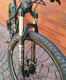 Mtb METHANOL BIANCHI SL - Full carbon - -colore G1-Nero/grafite-decals celeste opaco - Shimano XTR 2x11 - Ruote Crankbrothers Cobalt 2 , 27,5 " - Fork FOX 32 Float Performance 100mm. Misura S. In buone condizioni con normali segni di usura. Anno 2017