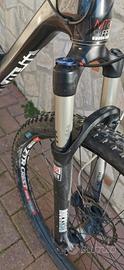 Forcella rockshox Reba da 100 mm con comando al manubrio revisionata e cartuccia nuova 2 posizioni