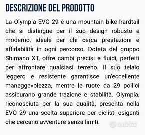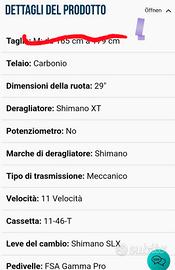 VENDO MTB FRONT IN CARBONIO OLYMPIA RUOTE DA 29 IN OTTIME CONDIZIONI TAGLIA L. CAMBIO SHIMANO XT CONSEGNA A MANO DOPO PROVA E VISIONE. PREZZO TRATTABILE DOPO VISIONE .