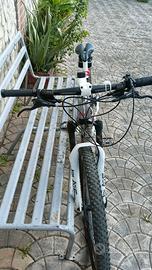 vendo per inutilizzo OLYMPIA BULL tg M 27,5, in alluminio, freni idraulici,con cambio SHIMANO DEORE 3X9v, sospensione BLAZE 659A con blocco al manubrio RST, ruote in alluminio, copertoni Continental XKING in ottimo stato. e sella ITALIA ergonomica. leggermente trattabile. non scambio