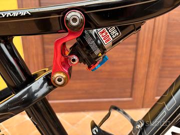 Vendo mtb olympia biammortizzata. Taglia M ruota 27,5. Forcella rock shox, biammortizzatore rock shox. L'unica cosa è la presenza di una piccola parte scheggiata sul telaio a causa della caduta di una bici sulla mia, coperta da adesivo adatto ed impermeabile . Catena,blocco corone posteriore e corona anteriore, gomme, tutto nuovo . Revisionata in toto in un centro specializzato, DANIEL WORKSHOP a Montesilvano... Vendo per acquistare una bici da downhill.... PREZZO TRATTABILE