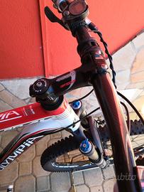 Vendo per inutilizzo Mountain bike Olympia Brave XC marathon competition telaio biammortizzato taglia S, cerchi da 26, forcella Fox rl 32, sella SMP, freni Avid Juicy Carbon con dischi freno maggiorati, guarnitura XC, pipa Fsa, manubrio e supporto sella Ritchey carbon, cerchi Filcrum Red metal 3.