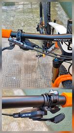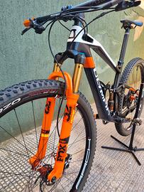 Olympia f1x full carbon TAGLIA S. Bicicletta pronto gara, peso 10 kg, pensata per cross country e marathon. Bici del 2020 usata per circa 1300/1400 km (strava). Usata sempre con rispetto per il mezzo, considerato il valore (oltre 6mila euro) e mai fatte gare. ● sospensioni fox 32 step-cast factory series kashima coat (steli dorati), mono fox float DPS factory, con comando unico al manubrio, ● gruppo completo cambio e guarnitura XTR(compreso manettino xtr e pacco pignoni xt scelto per maggiore durata), ● freni XTR (eccellenza per potenza e leggerezza), ● dischi Galfer, ● cerchi Stan's no tube ZTR Arch con mozzi Damil ricavati dal pieno e Made in Italy peso 1700 gr. ● trittico ritchey Wcs, ● salsicciotti Andreani nei copertoni, ● Catena xtr nuova con circa 250 km. ● pedali spd look x track. Bici con regolare manutenzione fatta. Sospensioni in eccellenti condizioni e oring sempre protetti con lubrificante siliconico Fox dopo i lavaggi, non perdono pressione e si regolano in rebound in maniera perfetta. Trasmissione efficiente al 100%, non salta nulla sotto forti spinte. Boccole del carro e del mono perfette e nessun scricchiolio. Peso totale con pedali e salsicciotti 10 kg. Il nuovo di media gamma si aggira su 13 14 kg. Unica cosa da fare e latticizzare nuovamente le ruote perche certamente si è asciugato il lattice dentro poi nient'altro. Vendo per inutilizzo. in dotazione manuale originale olympia, pedali e qualche ricambio comprato a parte per scorta. ------------------------------------ per ricerca scott cannondale specialized trek orbea bianchi ktm focuslapierre