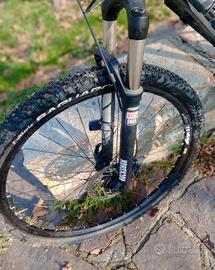 MTB OLYMPIA CLSX 29 CARBON, in ottimo stato, componentistica di qualità: Shimano Deore 2x10 con deragliatore posteriore XT, freni a disco idraulici Shimano, forcella ROCHSHOX bloccabile da manubrio 100 mm, pedali ibridi, manubrio, reggisella e manopole Ritchey. Non spedisco, solo consegna di persona e pagamento in contanti. prezzo leggermente trattabile, astenersi offerte ridicole e affaristi. La bicicletta è visibile in zona san siro Milano, previa appuntamento da concordare