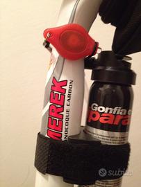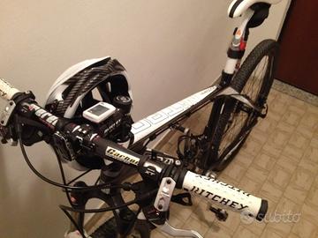 Telaio Monoscocca in Carbonio, tubo reggisellla “merek” carbonio, pipa “ritchey” carbonio, manubrio “merek” carbonio, porta borracce carbonio.