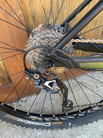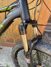 Freni a disco idraulici Shimano, cambio SLX, forcella RockShox con blocco.