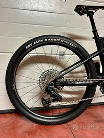 Freni XTR, dischi XTR, Forcella Fox Kashima 34 escursione 120, Ammortizzatore Fox Kashima escursione 80, Cerchi Oquo Carbonio, sella Selle Italia, Reggisella telescopico, cambio Sram XO AXS elettronico con apposita batteria e caricatore, gomme CST Jack Rabbit.