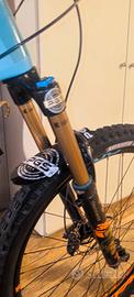 Telaio: Orbea Occam 2022(carbonio)Azzurro/arancio, taglia XL Forcella: Fox 36 Float Factory GRIP2 – 160 mm Ammortizzatore: Fox Float X Factory Sella: WTB SilveradoTrail/enduro Freni: Shimano XT (4 pistoni) Cambio: Shimano XT 12v (10-51T) Manubrio: Race Face Atlas alluminio Ruote: Race Face AR30 Pedali: Race Face Atlas Flat (arancio anodizzato)