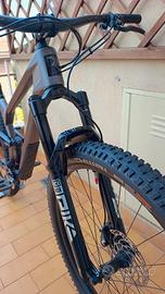 Vendo Radon Skeen Trail acquistata nuova a maggio 2023. Taglia M Versione 10.0 Ottima bicicletta per XC, Trail ed All Mountain Robustissimo telaio in carbonio e carro in alluminio Classe 4 Escursione anteriore 130 posteriore 120 Peso effettivo circa 13.6kg Condizioni eccellenti. Trasmissione completa Sram GX 12V Forcella RockShox Pike Ultimate (top di gamma) con regolazione alte e basse velocità Mono RockShox Deluxe Select+ con blocco Sella e manopole SDG Ruote Newmen Evolution SL A.30, 30mm, Boost 110/148mm Freni Magura MT5 Monta ancora i copertoni di serie con ancora molta strada da fare. Visibile zona Ostia Antica (RM) Su richiesta posso fornire ulteriori foto ed info. Sono il primo proprietario, fornisco fattura di acquisto Gentilmente NO PERDITEMPO E NO PROPOSTE RIDICOLE *PEDALI IN FOTO NON INCLUSI* Valuto permuta con front AM/Enduro taglia M ruote 29 tipo Canyon Stoic Orbea Laufey Cannondale Habit HT Giant Fathom Santa Cruz Chameleon Trek Roscoe Marin Sant Quentin Kona Gonzo GT Zaskar + conguaio a mio favore