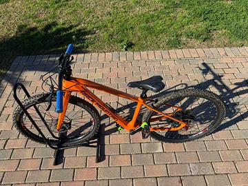 RACE MOUNTAIN R27,5 PRO anno 2024. Telaio e forcella in carbonio. Altezza bimbo 125/140 circa. Compatibile ruota 26” o 27,5”; attualmente montata 26”. Cambio SRAM SX 12V. Freni idraulici. Pedivella 160. Corona 32T. Copertoni 90%. Controllo generale in RACE MOUNTAIN il 23.10.2025. Utilizzo effettivo circa 6 mesi. € 850,00